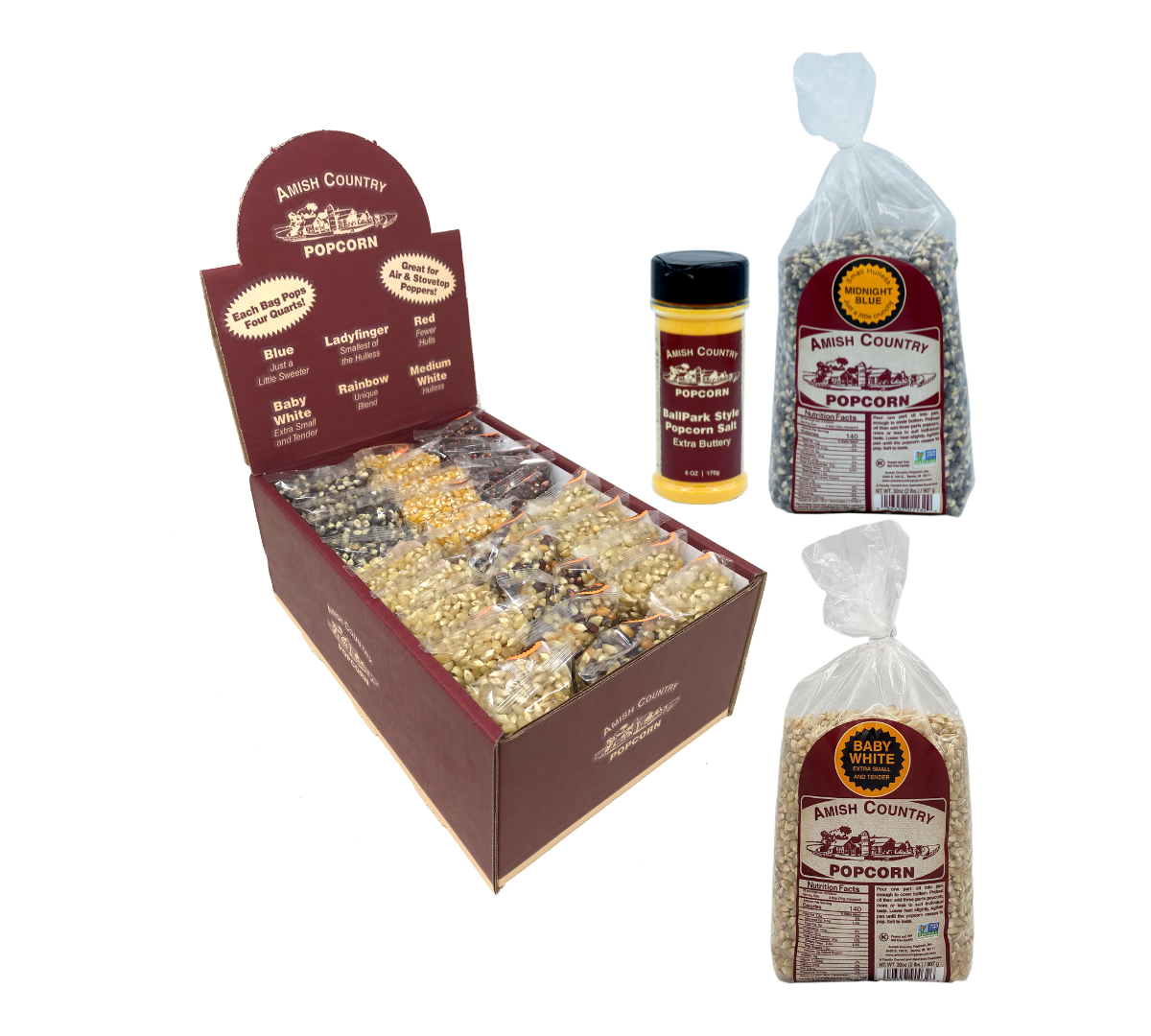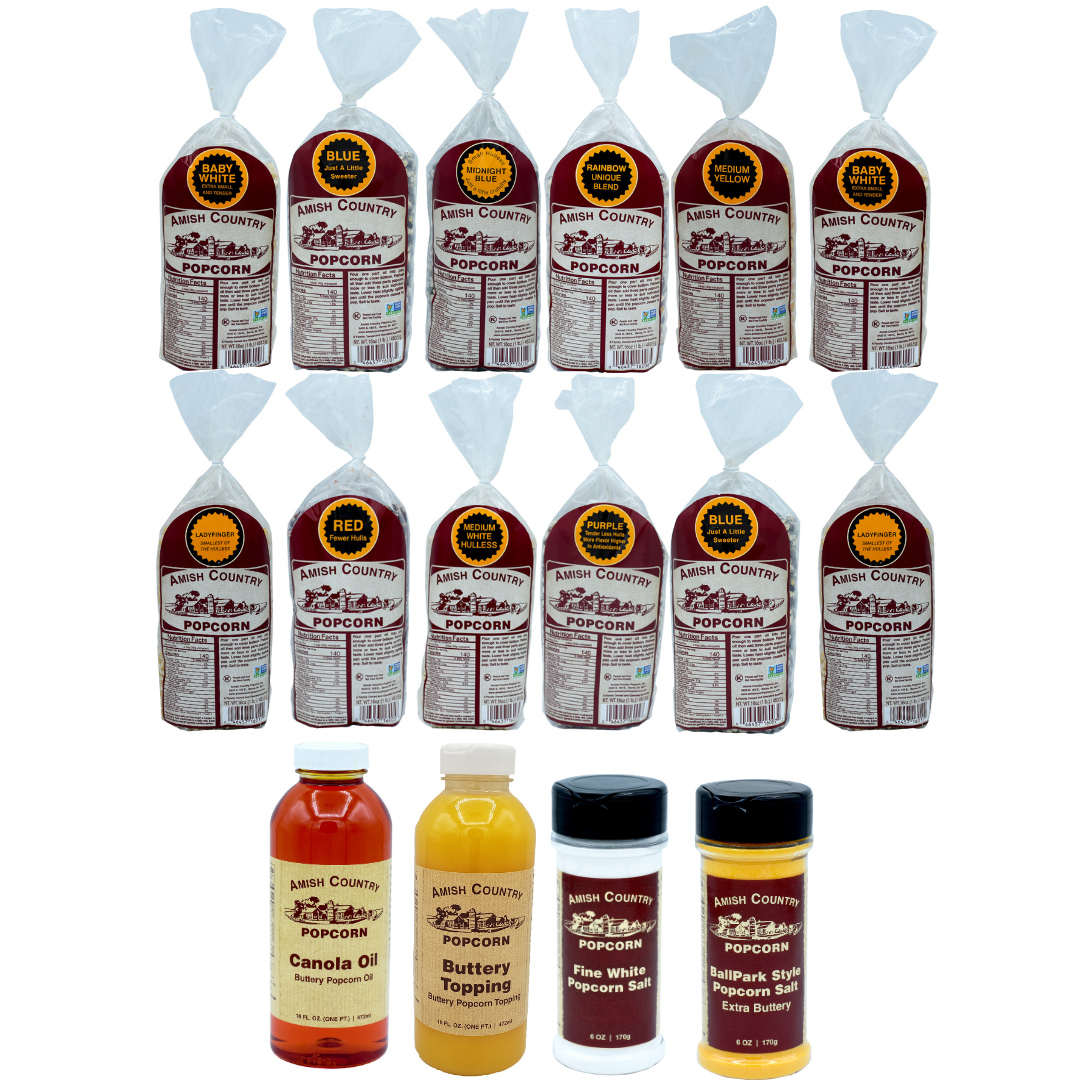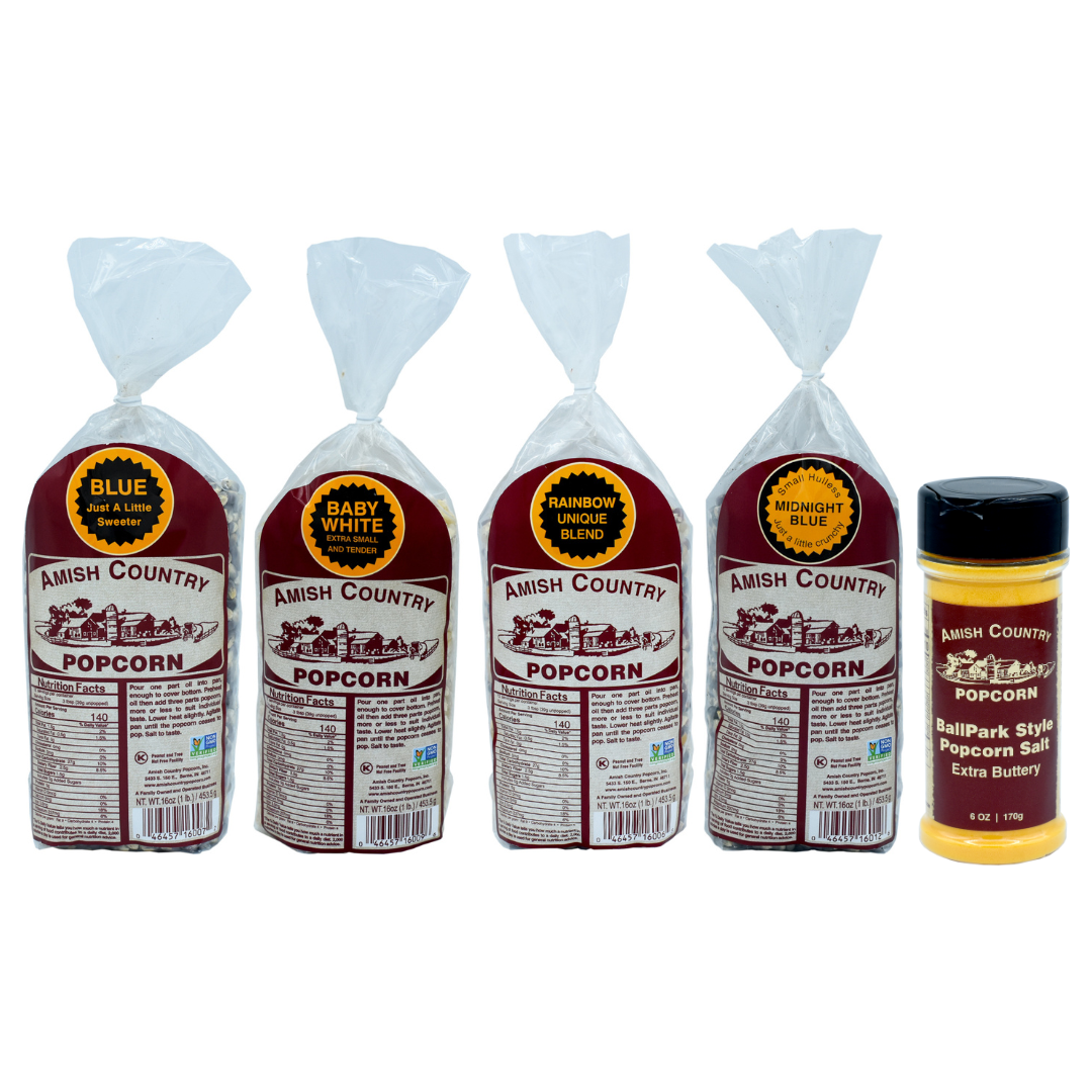 30/4oz Sampler, One 6 oz Salt and Two 2 Pound Bags of Popcorn