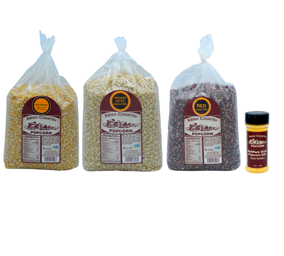 Four 1 lb Bags of Popcorn w/ One 6 oz Salt