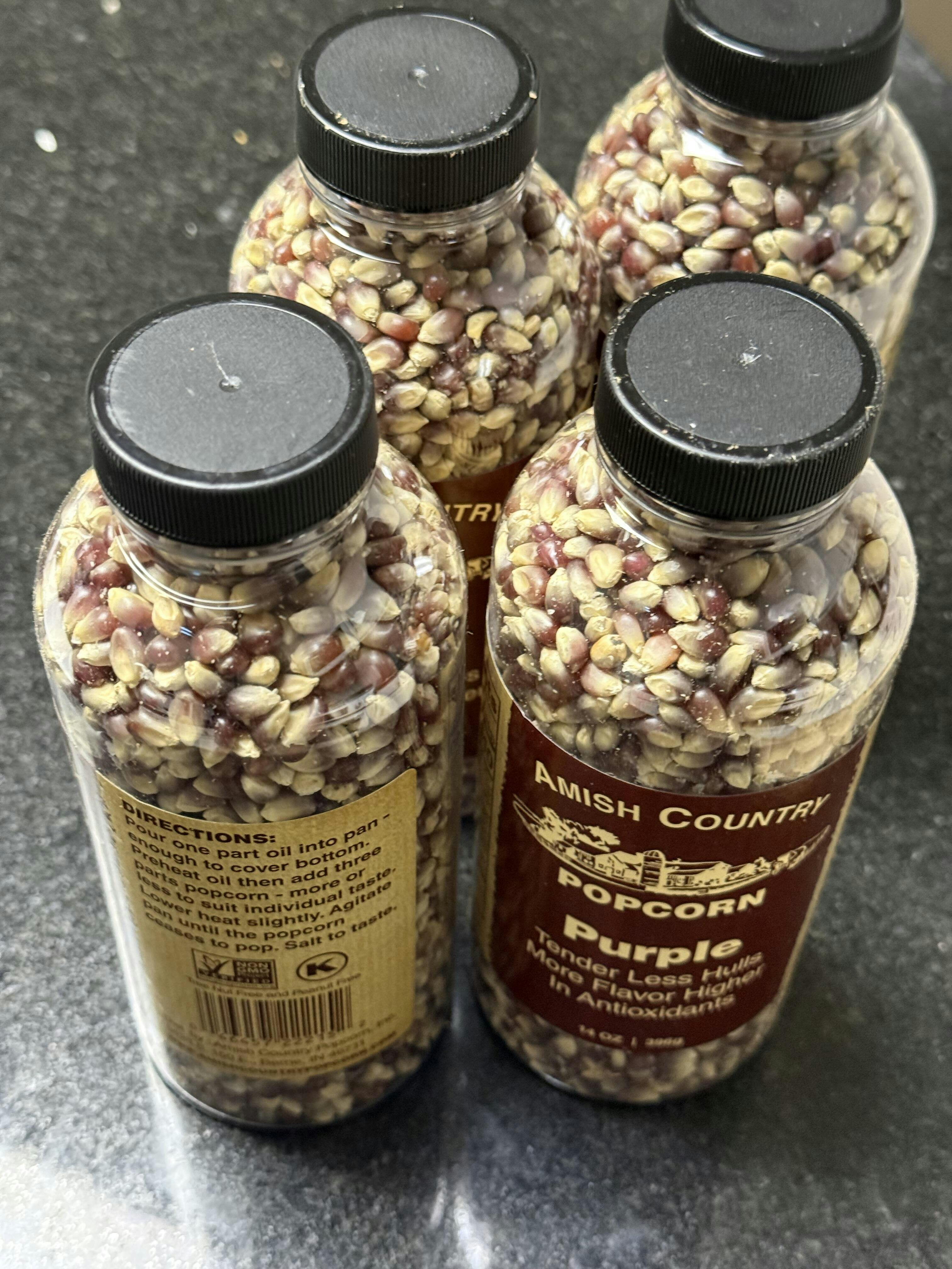 The Purple Popcorn is known for its vibrant purple unpopped kernels. It has fewer hulls and a unique taste specific to Purple Popcorn that is enjoyed by many. When popped, the kernels are small with a texture combination of soft and crunchy, providing a well-rounded popcorn experience. While our uniquely-colored popcorn kernel varieties (Midnight Blue, Rainbow) have a colored kernel, they will be white or yellow once popped. For popped popcorn to be colored, the kernels need to be dyed beforehand, and we do not use dyes or preservatives.