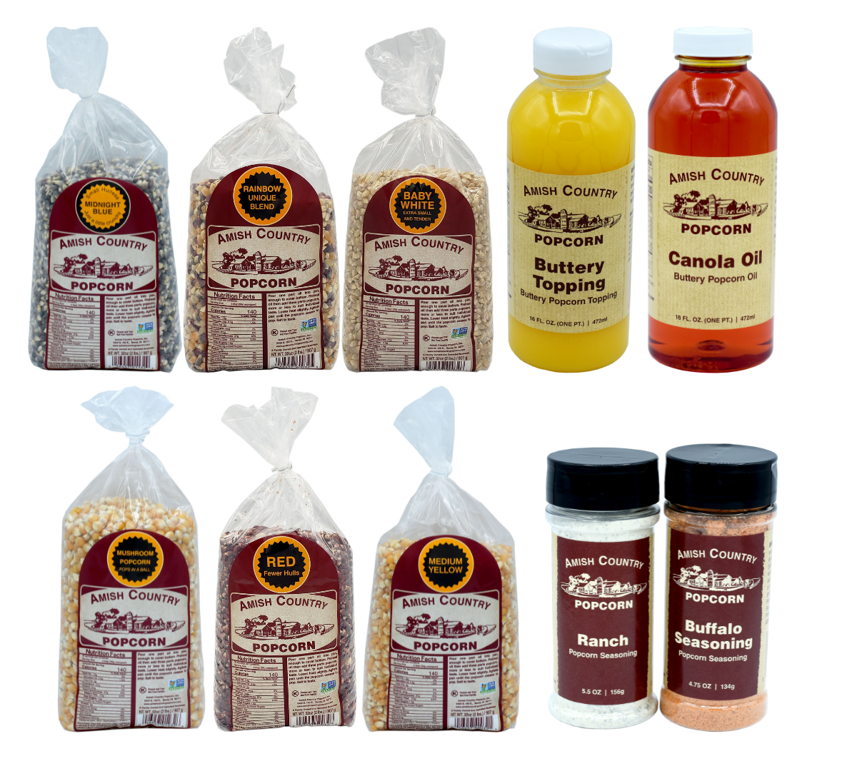 Six 2 lb Bags of Popcorn w/ Two 6 oz Salts or Seasonings and Two Oils